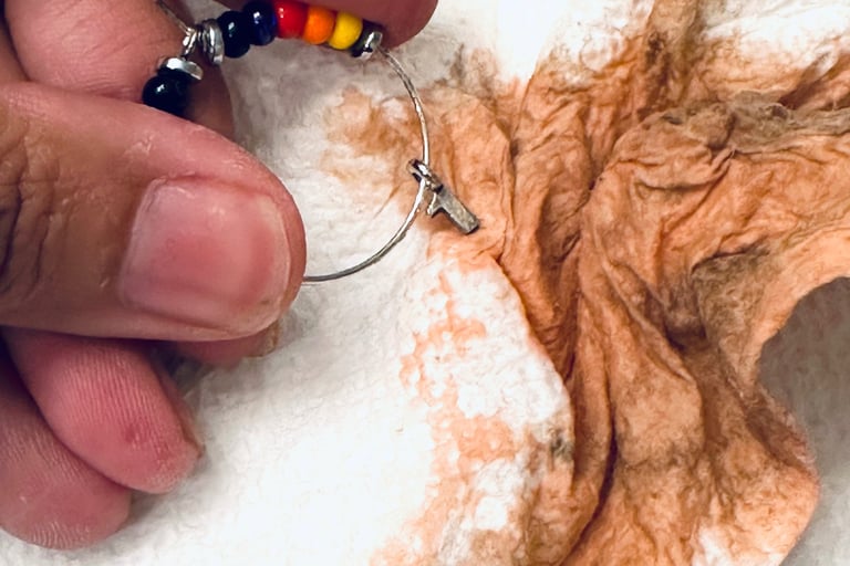 Step 4: You'll see the tarnish rub right off. Once you're satisfied with how awesome your accessory looks, you can rinse it under water to remove any residue. Follow the instructions of your cleaner in case other steps are recommended.